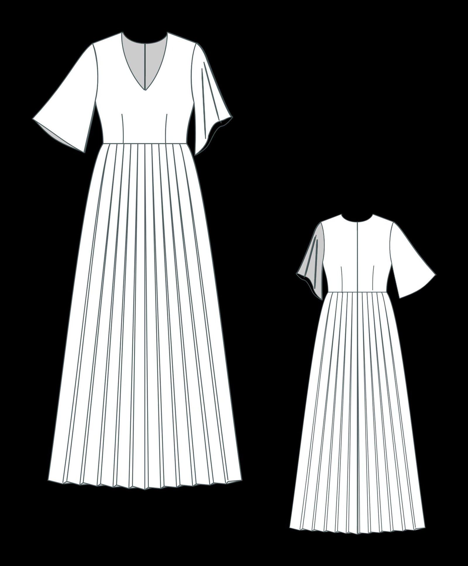 Elegant V Neck Pleated Midi Dress Sewing Pattern available as an instant download (pdf) sewing pattern bundle with a range of size options, including plus sizes ;